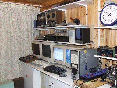 Ça fait plusieurs mois que Jean-Pierre nous raconte sur les VHF la construction du shack sur les collines. L’ajout d’un garage enterré surmonté d’une pièce supplémentaire, rêve de chaque OM a été réalisé entièrement par l’opérateur. Le résultat, un petit nid douillet où le mat d’antenne traversant le toit est directement commandé en rotation depuis le pupitre !